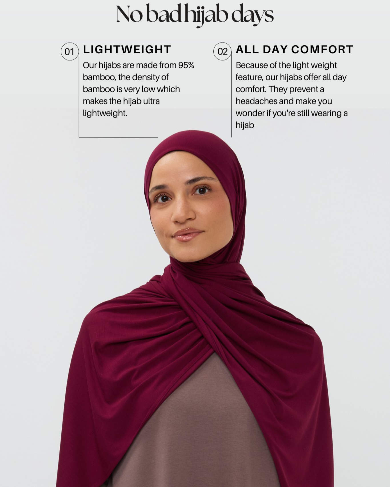 Having trouble finding a hijab that doesn't cause hair loss & breakouts? This hijab stays in place, is ultra light-weight and prevents hair loss & breakouts. The benefits & softness of this hijab make it perfect for everyday wear.