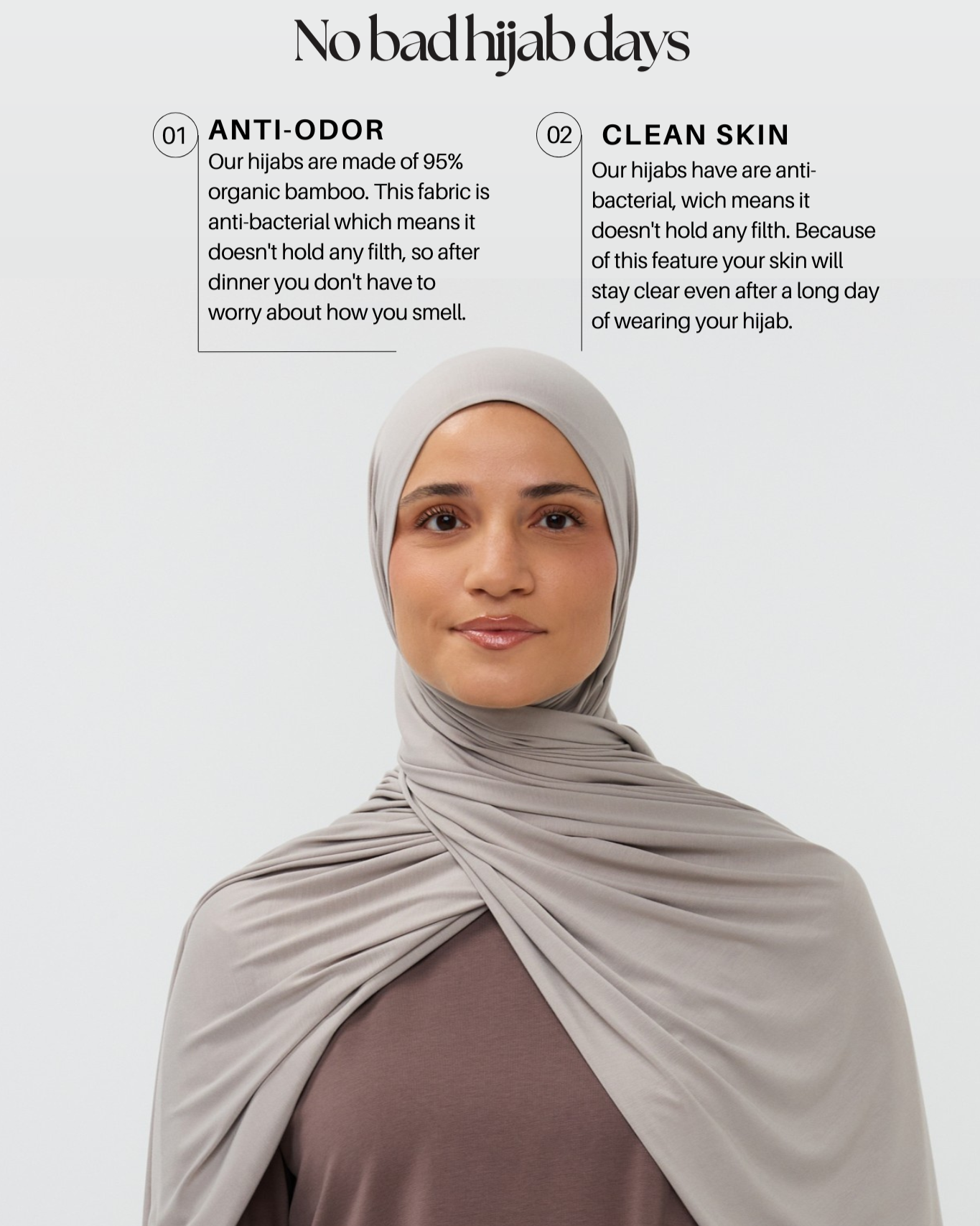 I absolutely love the material of this hijab. It’s great for my hair and skin. In fact, it’s the only thing my skin will tolerate. Highly recommend. Can’t wait for new colors to drop!