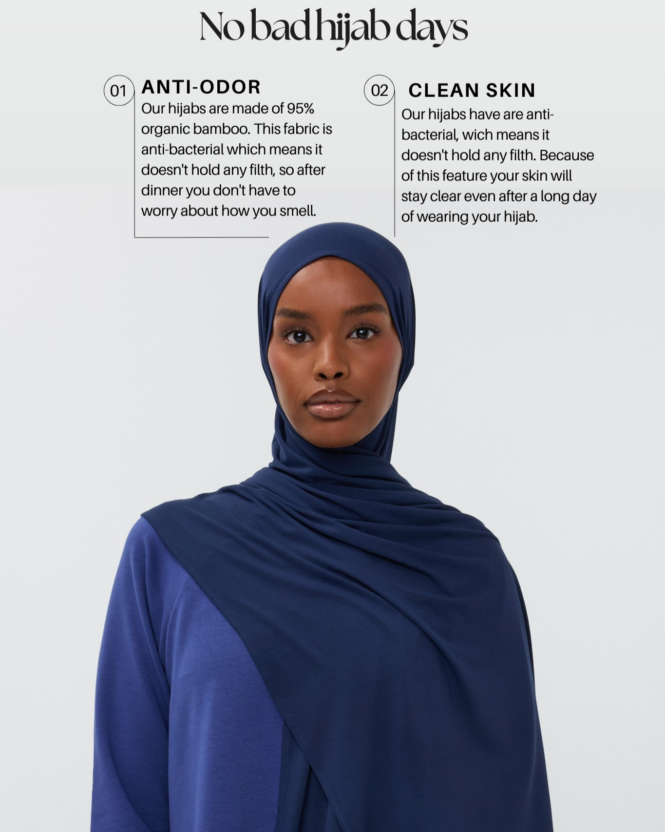 I absolutely love the material of this hijab. It’s great for my hair and skin. In fact, it’s the only thing my skin will tolerate. Highly recommend. Can’t wait for new colors to drop!