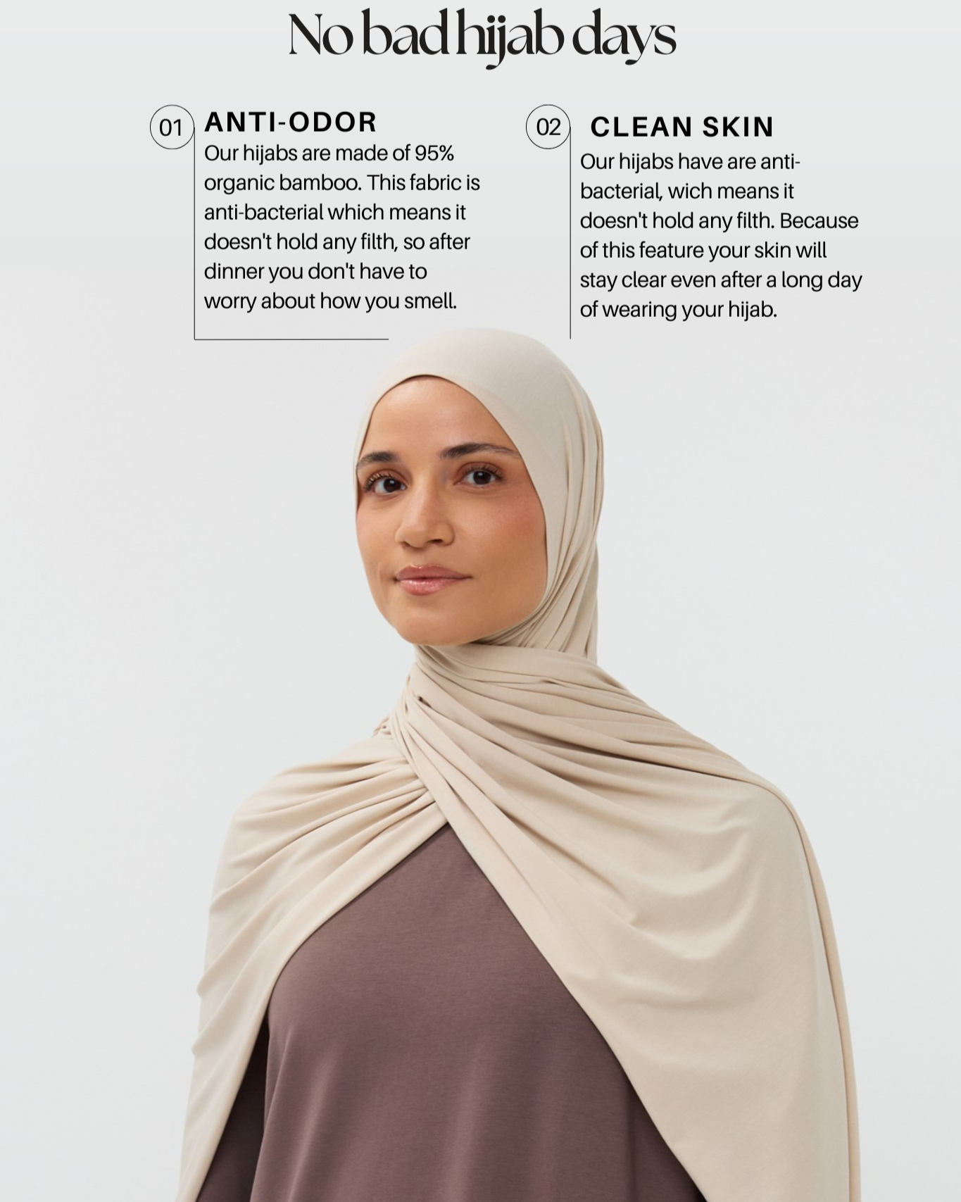 I absolutely love the material of this hijab. It’s great for my hair and skin. In fact, it’s the only thing my skin will tolerate. Highly recommend. Can’t wait for new colors to drop!